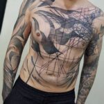 Tetování abstraktní čáry na břichu