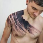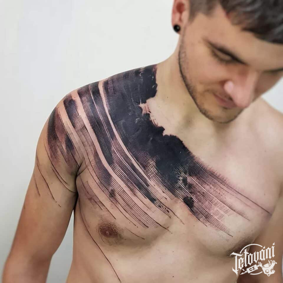 Tetování abstraktní čáry na hrudníku