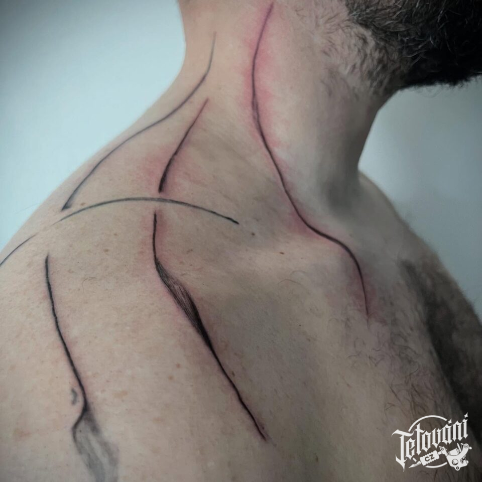 Tetování abstraktní čáry na krk