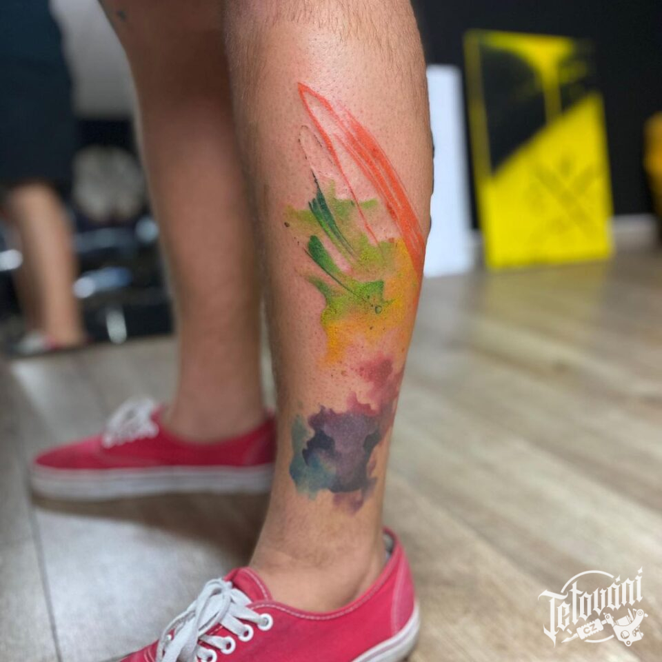 Tetování abstraktní čáry na lýku