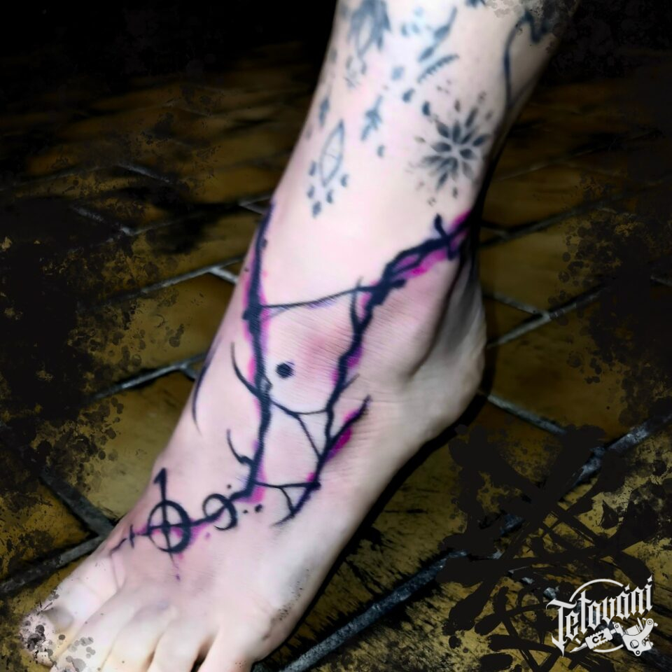 Tetování abstraktní čáry na nártu