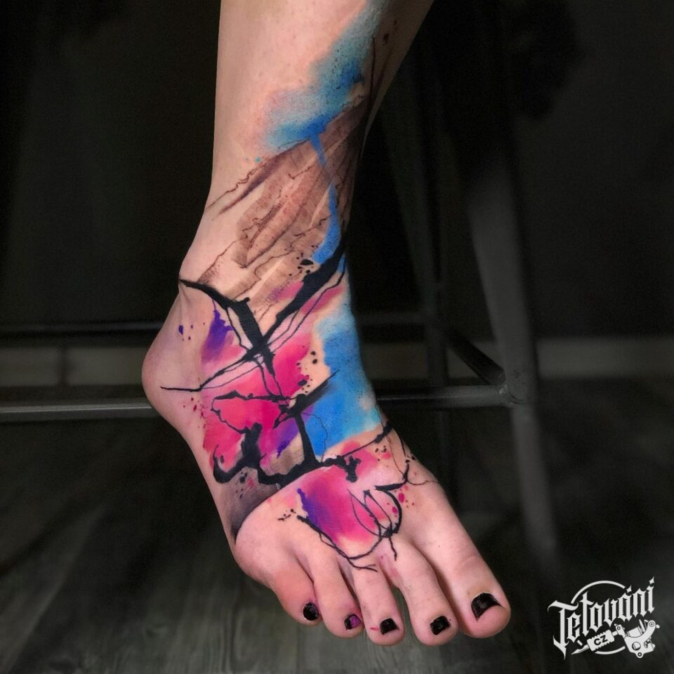 Tetování abstraktní čáry na nártu