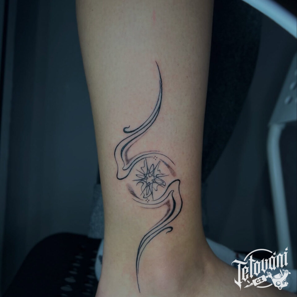 Tetování abstraktní čáry na nohu