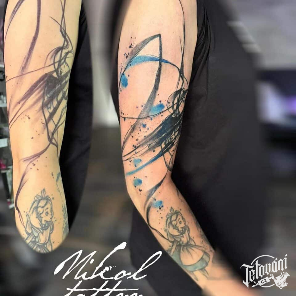 Tetování abstraktní čáry na paži