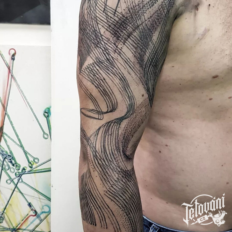 tetování abstraktní čáry na paži
