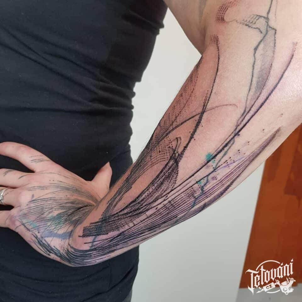 Tetování abstraktní čáry na předloktí