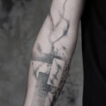 Tetování abstraktní čáry na předloktí