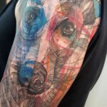 Tetování abstraktní čáry, zvíře, pes na rameni