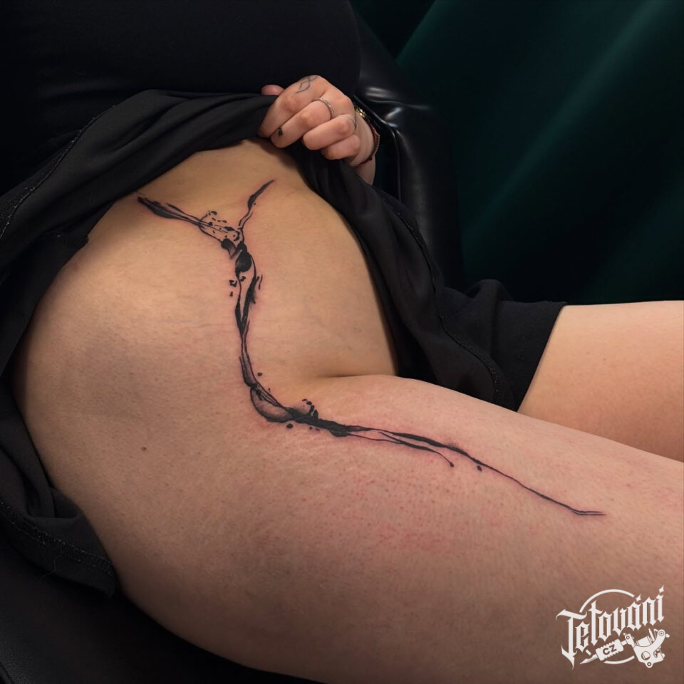 Tetování abstraktní čáry na stehno