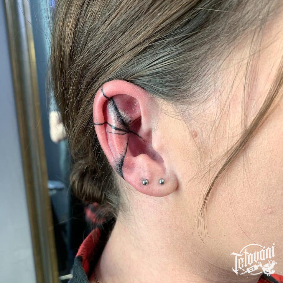 Tetování abstraktní čáry na uchu