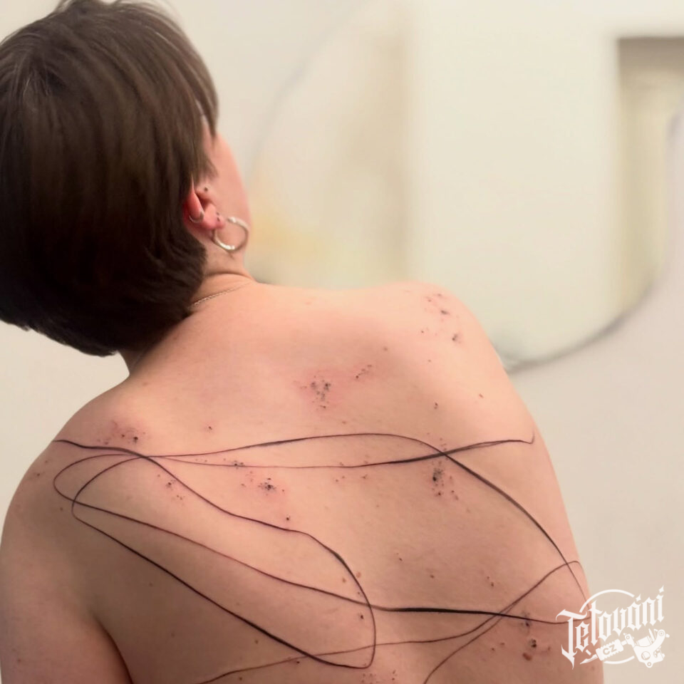 Tetování abstraktní čáry na záda