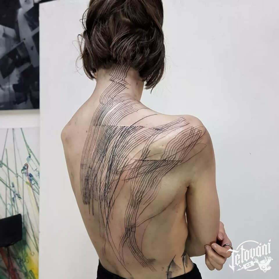 Tetování abstraktní čáry na zádech