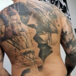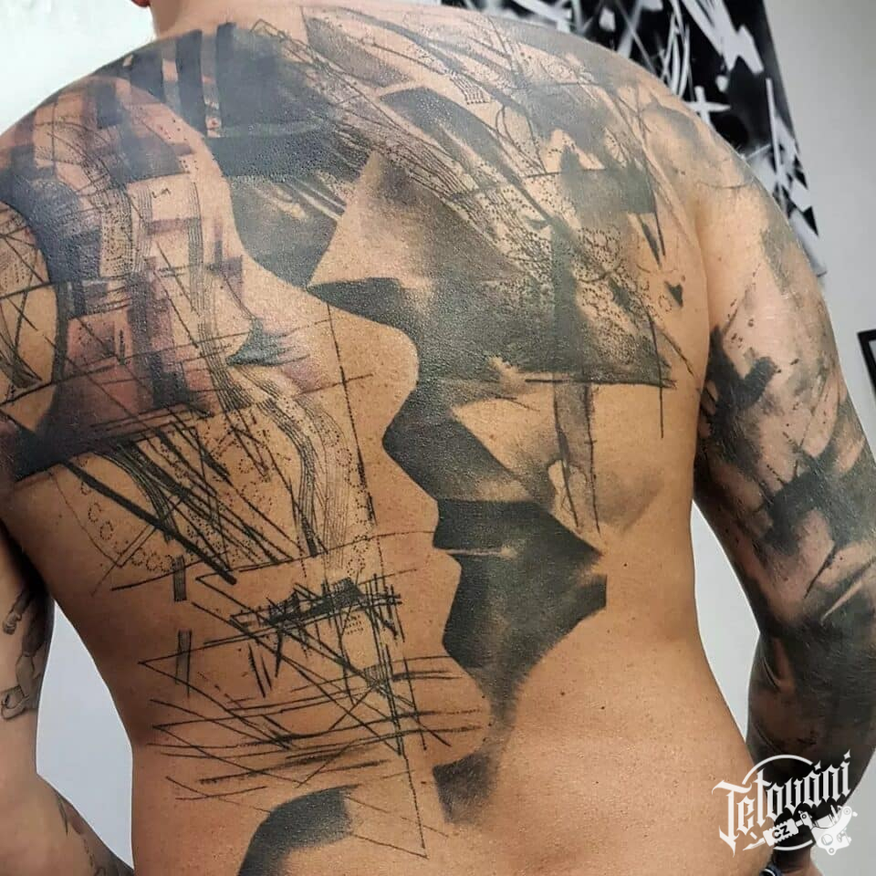 Tetování abstraktní čáry na zádech