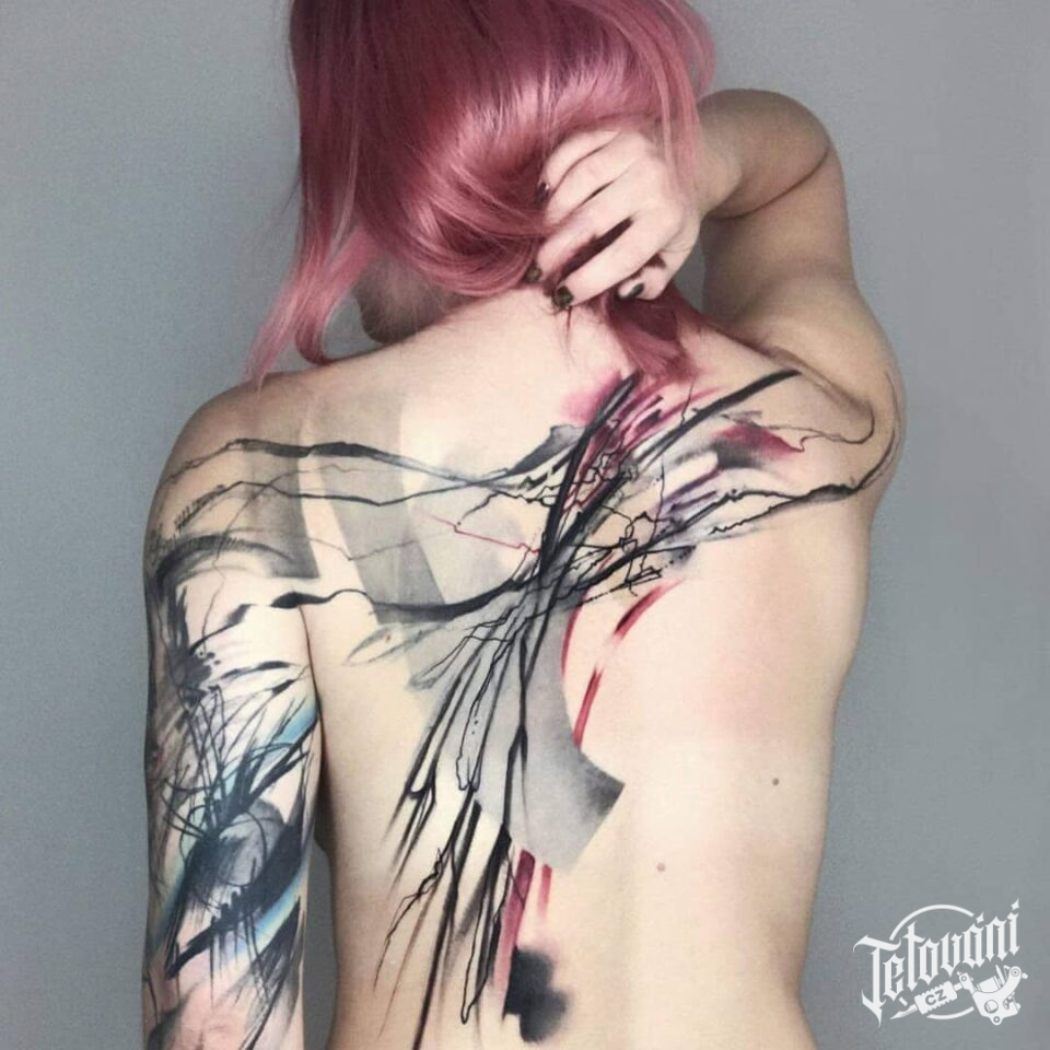 Tetování abstraktní čáry na zádech