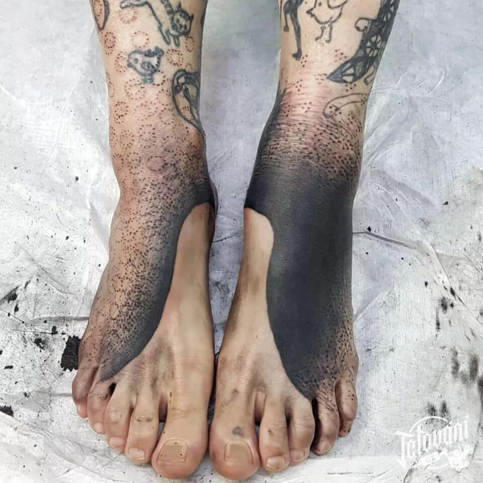 Tetování abstraktní čáry, pruhy a tvary na nohou