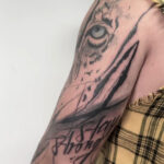 Tetování abstraktní čáry, tygr, zvíře, nápisy motto, motivační na rameno