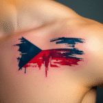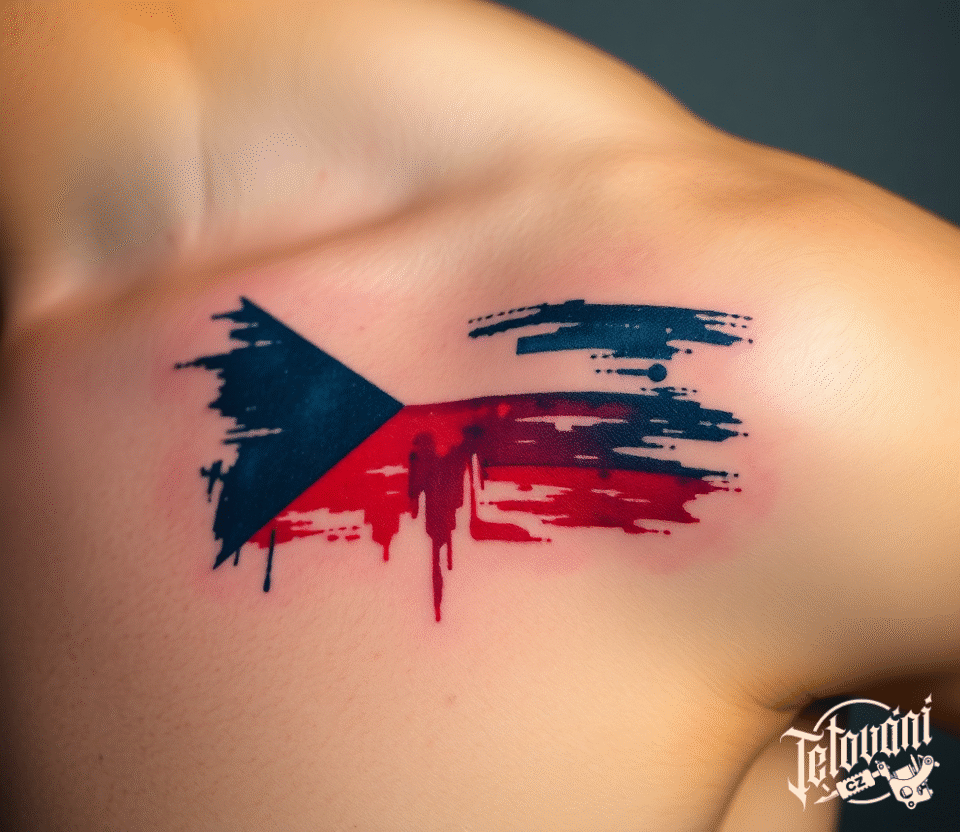 Tetování abstraktní česká vlajka pod klíční kostí