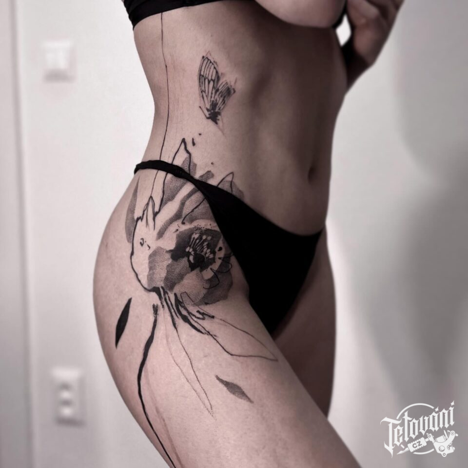 Tetování abstraktní květina na boku