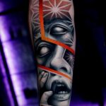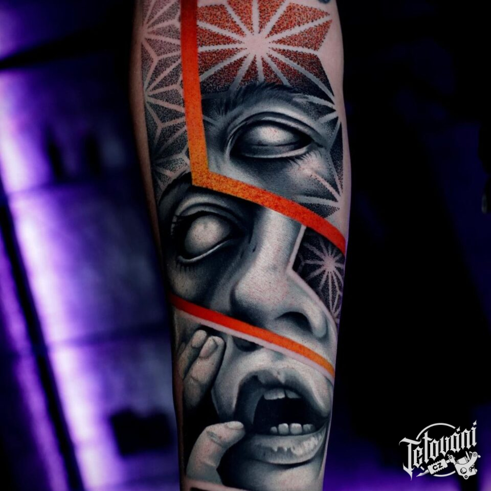 Tetování abstraktní portrét na předloktí