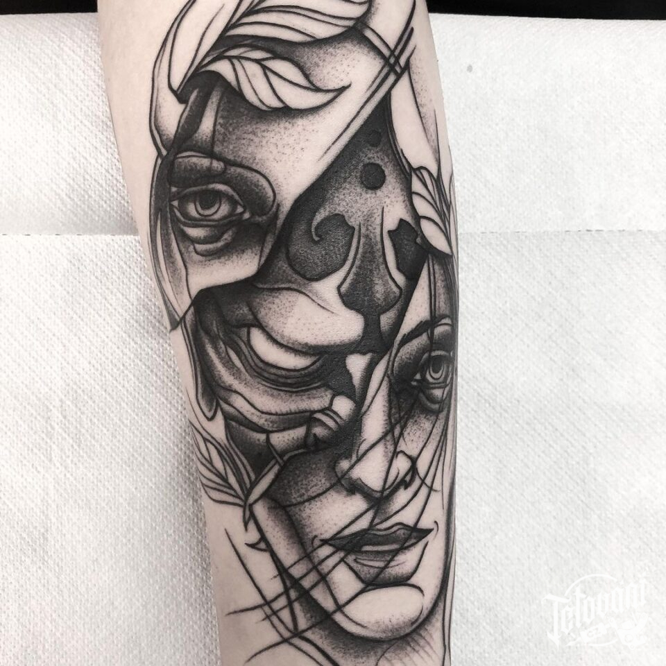 Tetování abstraktní portrét na předloktí