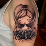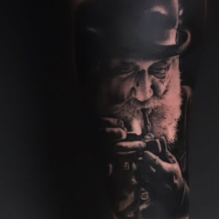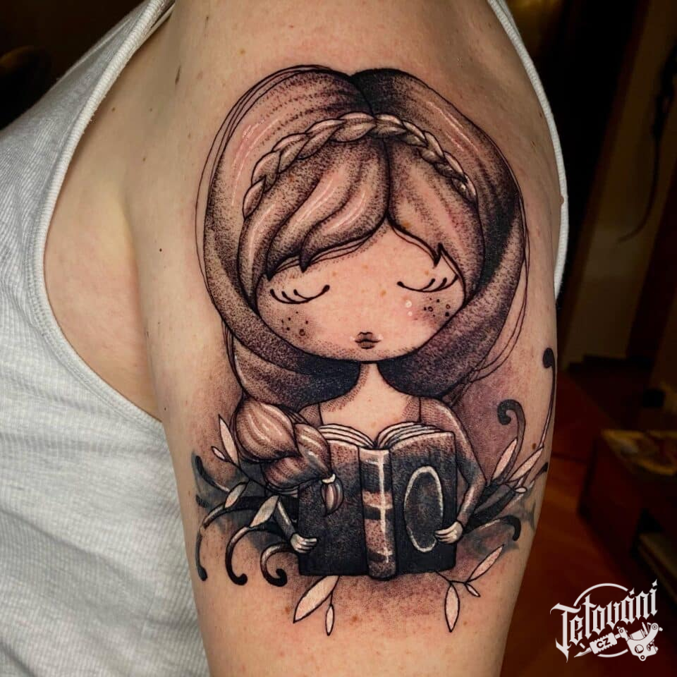 Tetování abstraktní portrét na rameni
