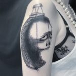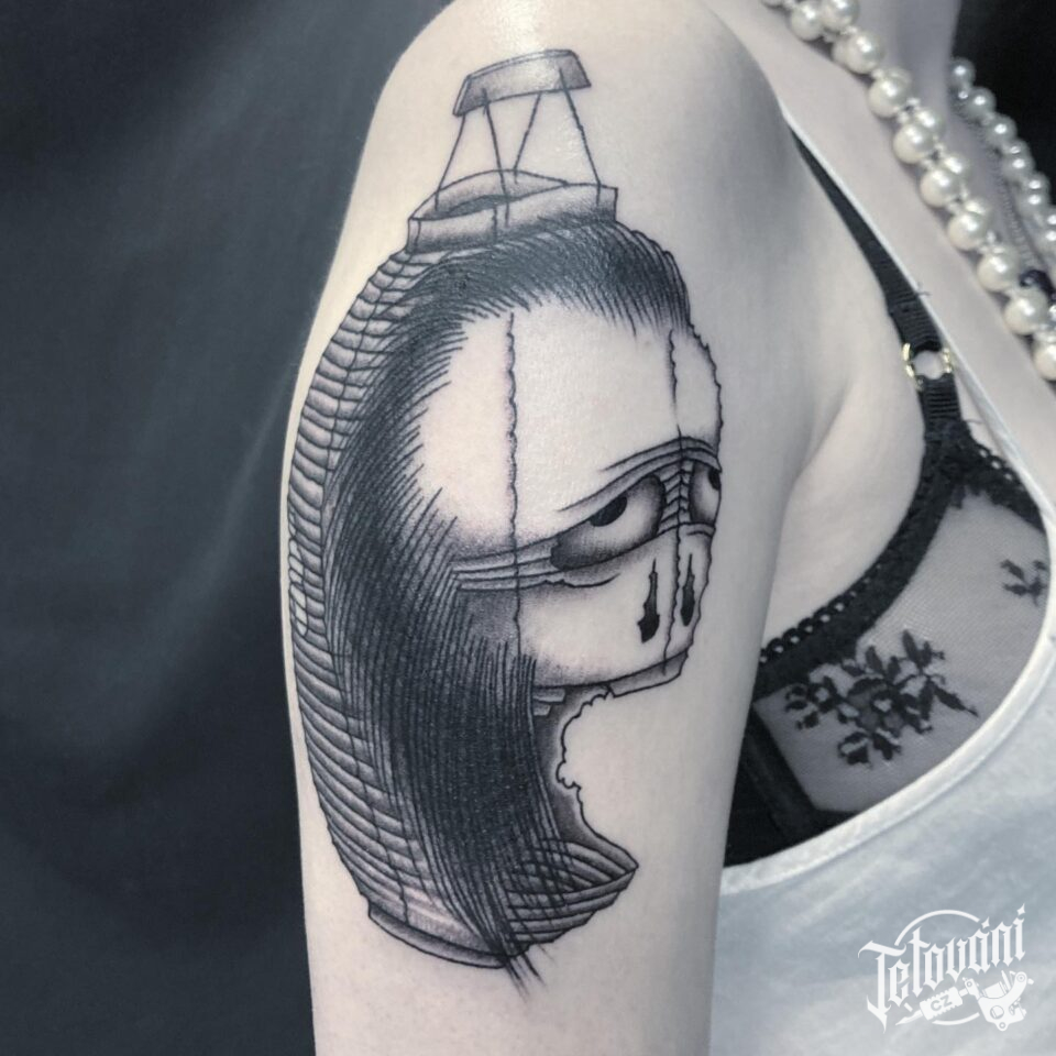 Tetování abstraktní portrét na rameni
