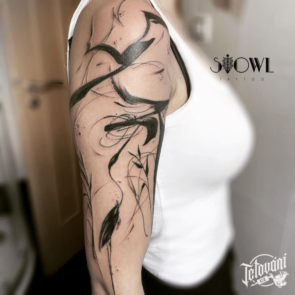 Tetování abstraktní ptáci, volavky na paži