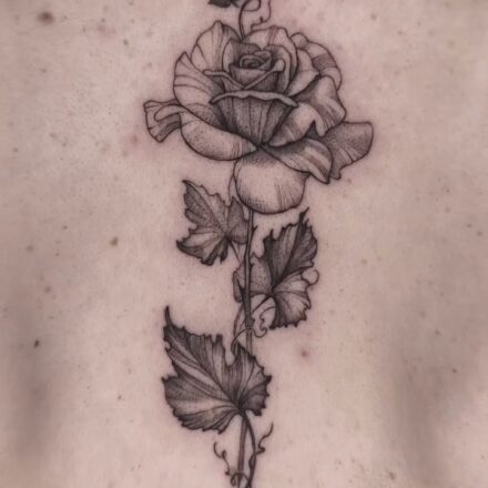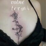 Tetování abstraktní růže mezi prsa