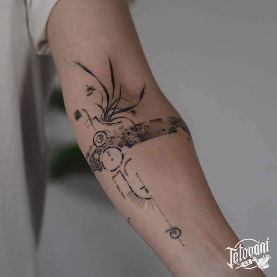 Tetování abstraktní tvary, znaky a symboly na předloktí