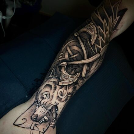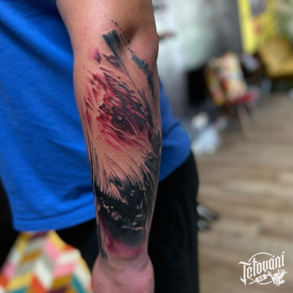 Tetování abstraktní zvíře, vlk na předloktí