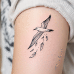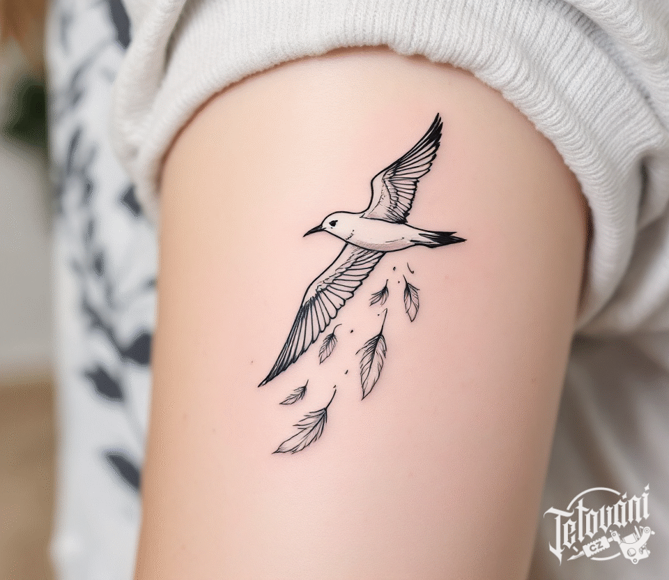 Tetování albatros a pírka na rameno