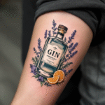 Tetování alkohol, předměty, láhev ginu na předloktí