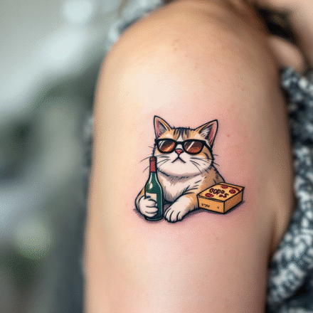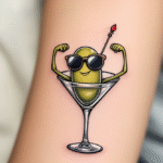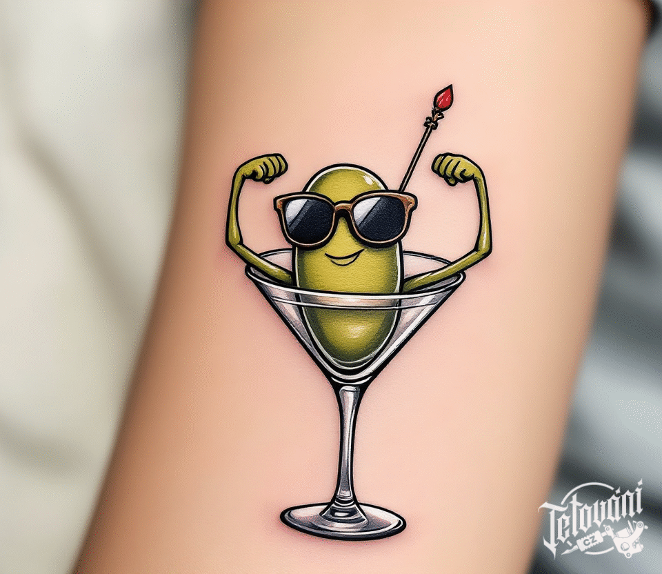 Tetování alkohol, předměty, sklenička s olivou na ruce