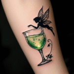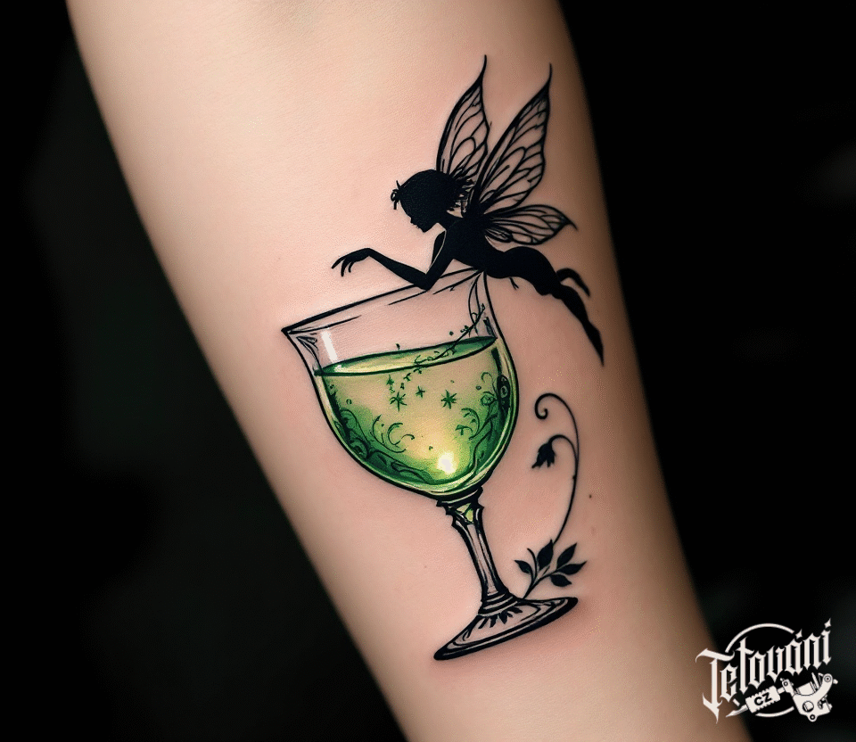 Tetování alkohol, sklenička s vílou na předloktí