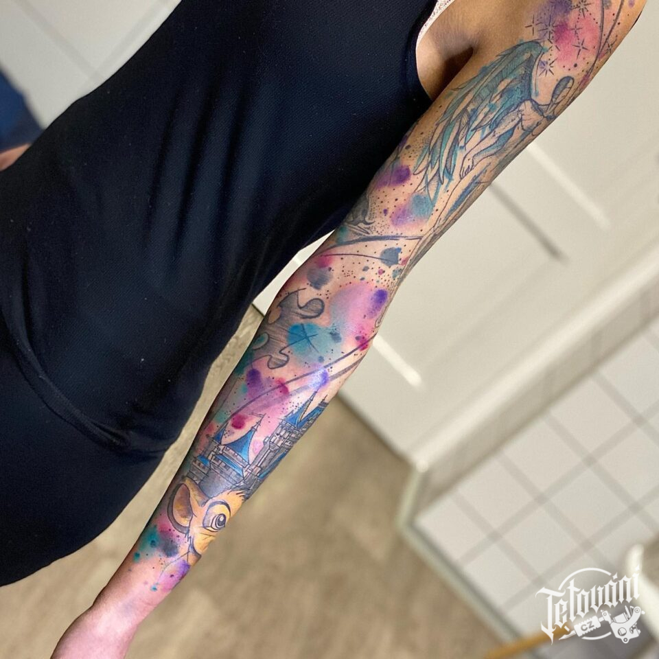 Tetování anděl a Disney postavička, rukáv
