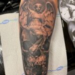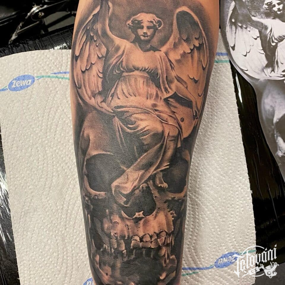 Tetování anděl a lebka na předloktí