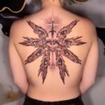 Tetování anděl a meč na zádech
