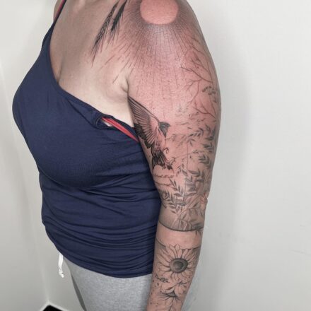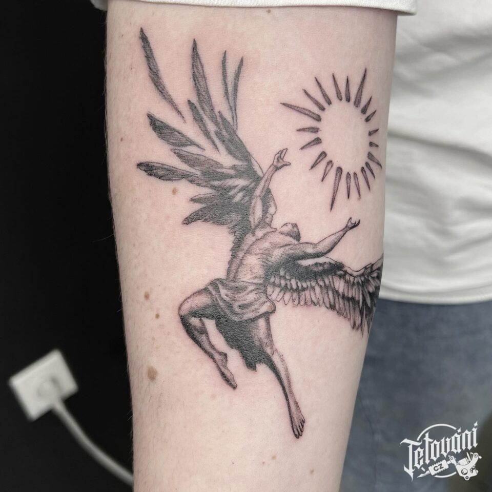 Tetování anděl a slunce na předloktí