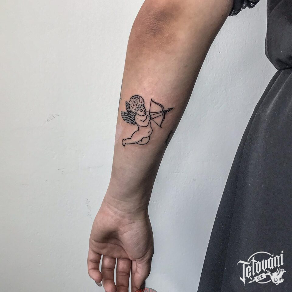 Tetování anděl, amorek na předloktí