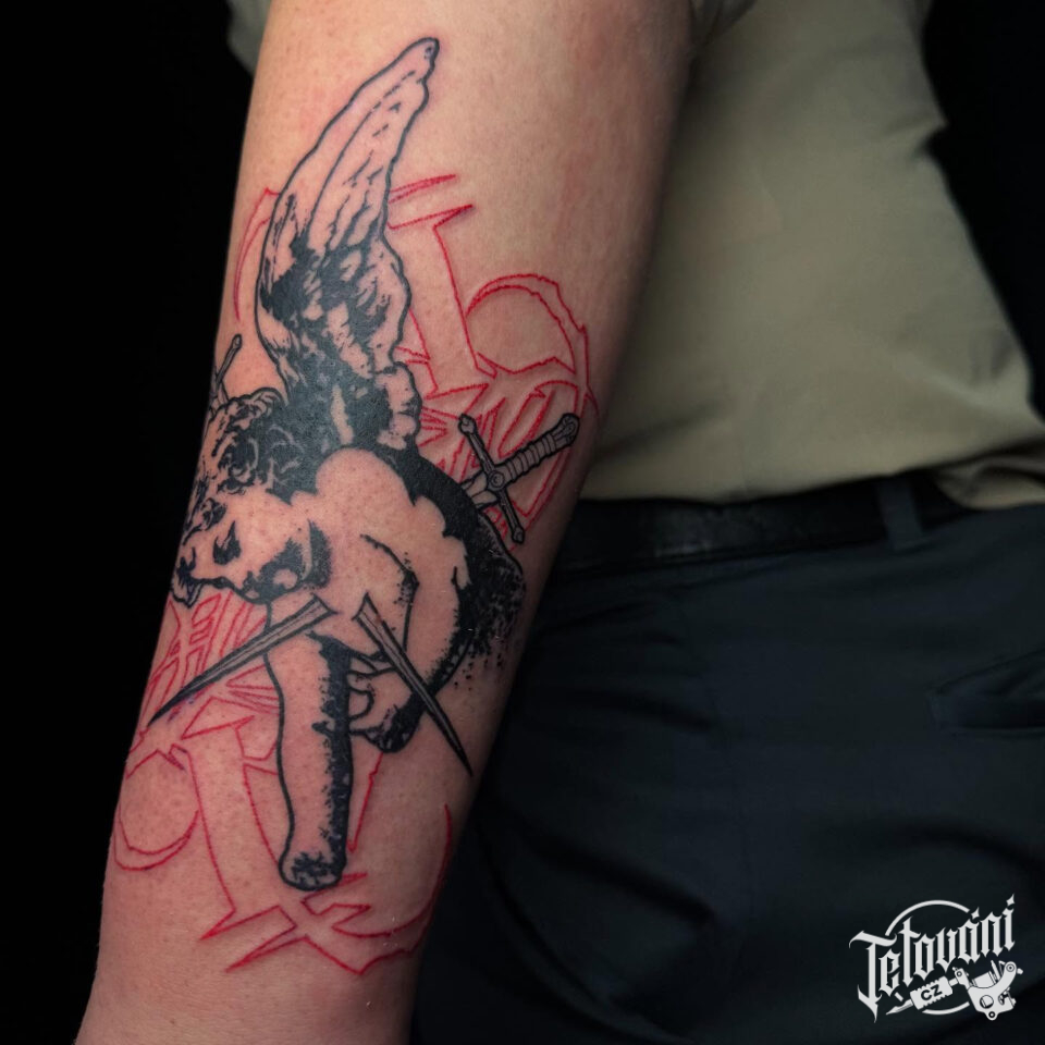 Tetování anděl, anděl smrti na předloktí