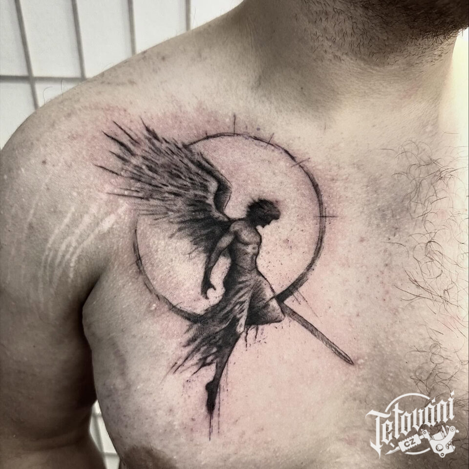 Tetování anděl na hrudník