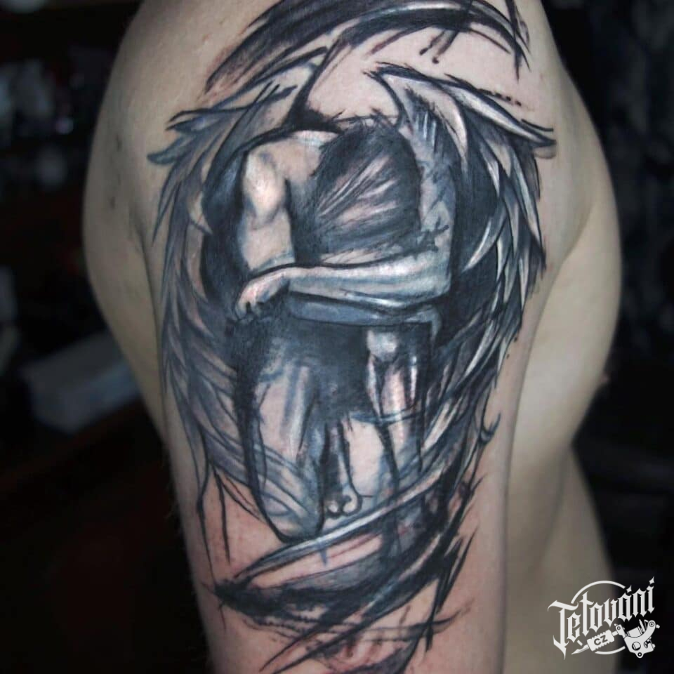 Tetování anděl na paži