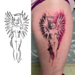 Tetování anděl s ďáblem na bok stehna