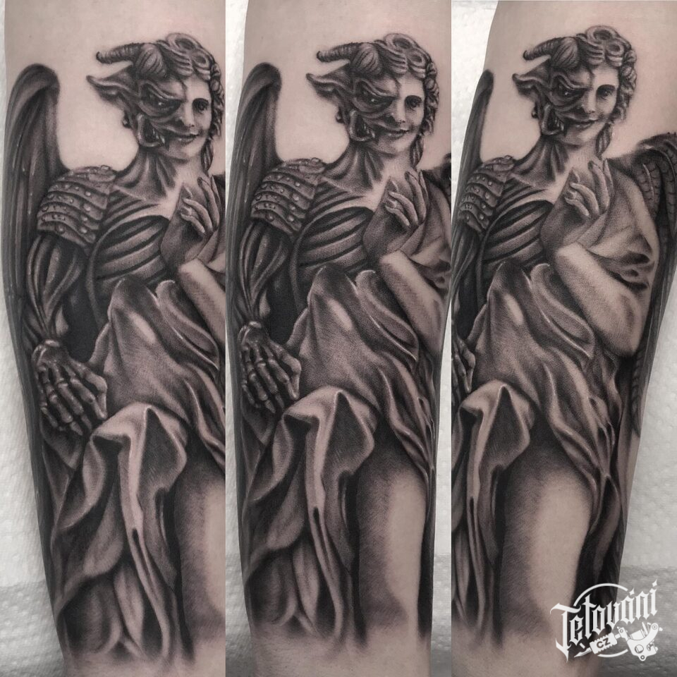 Tetování anděl s ďáblem na předloktí