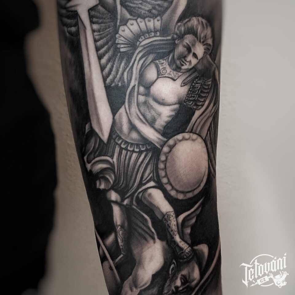 Tetování anděl s ďáblem na předloktí