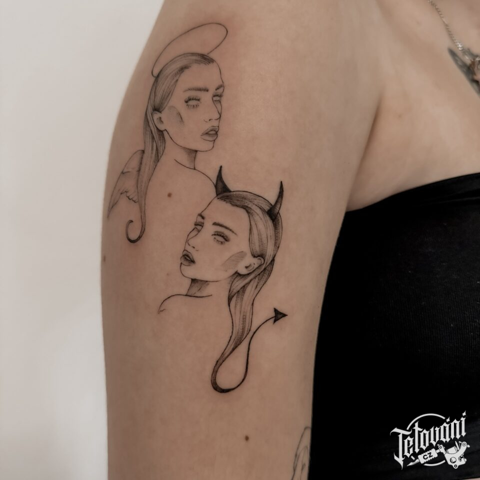 Tetování anděl s ďáblem na rameno
