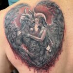 Tetování anděl s ďáblem, srdce na lopatku