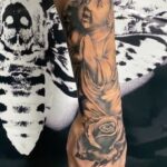Tetování anděl s růží na předloktí