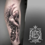 Tetování anděl strážný na holeni