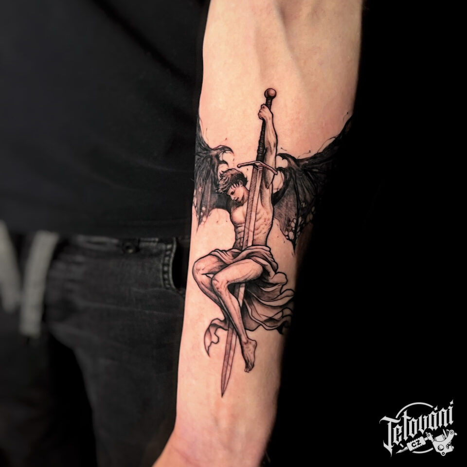Tetování anděl strážný na předloktí